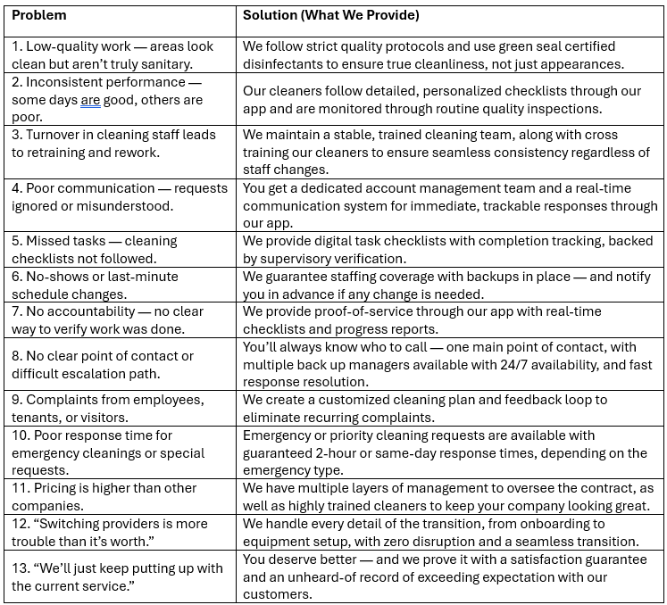 Many companies and agencies experience ongoing challenges with their cleaning providers. At AJI, we focus on delivering solutions—not excuses.
